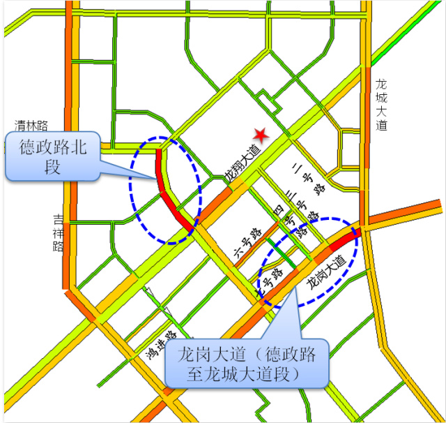 根据交通承载力分析,片区建成后可能导致龙岗大道(德政路至龙城大道段)、德政路北段交通拥堵。