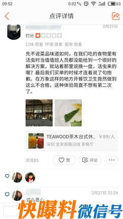 那么,这个令涂小姐作呕的“蠕虫”到底是什么虫呢?“快曝料”编辑查询后发现它学名叫蛞蝓,就是咱们俗称的鼻涕虫。外表看起来像“没壳的蜗牛”,体表湿润有黏液,是一种食性复杂和食量较大的有害动物。图为涂小姐在大众点评网上的差评。