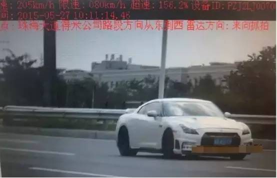 去年6月,这辆深圳牌的GTR跑车在珠海大道狂飙,超速156.2% ,被交警蜀黍逮到,测速雷达显示。超速最离谱的一次,最高时速竟然高达205公里/小时。最后车主因无证驾驶,严重超速等违法行为,被处 罚款1500元、拘留15天的重罚。