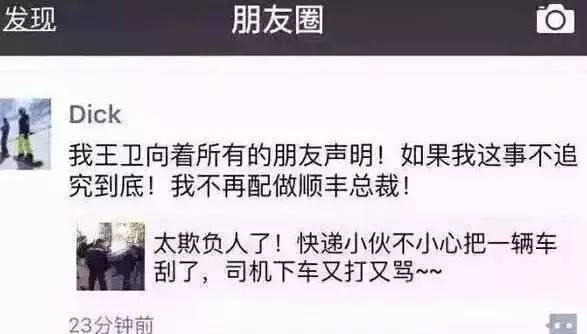 王卫最近一次出现在公众视野是去年的快递小哥被打事件。去年4月,一则关于顺丰快递员被打的视频在微博等社交媒体引发关注,针对快递员因与一辆京牌轿车发生剐蹭被打耳光一事,网传王卫在微信朋友圈回应称:“我王卫向着所有的朋友声明!如果我这事不追究到底!我不再配做顺丰总裁!”王卫此举当时赢得不少网友的称赞。
