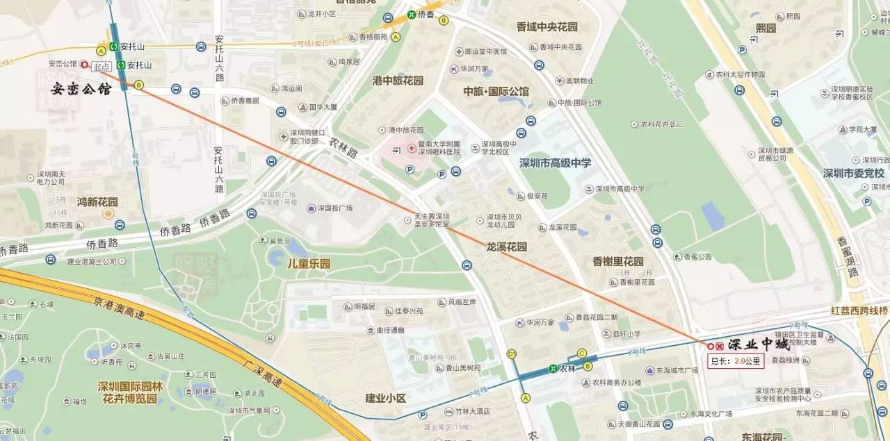 从大区域上来看,两者之间的距离并不算远,被侨香路分隔开,直线只有2公里的距离,因此很多配套其实是可以共用的。