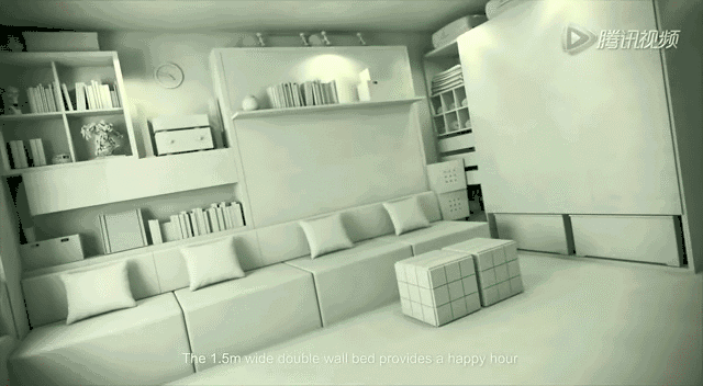 客厅一秒变卧室?翻转式沙发床组合,如变魔术一样沙发瞬间变作舒服的卧床,让精巧的设计为蜗居生活带来源源不断的明媚心情。