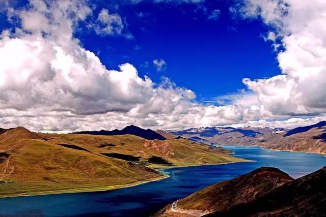 羊卓雍错简称羊湖,藏语意为"碧玉湖",是西藏三大圣湖之一,像珊瑚枝一般,因此它在藏语中又被称为"上面的珊瑚湖"。