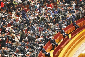 大会吸引大批中外记者前来采访。深圳商报特派记者 林晓斌摄