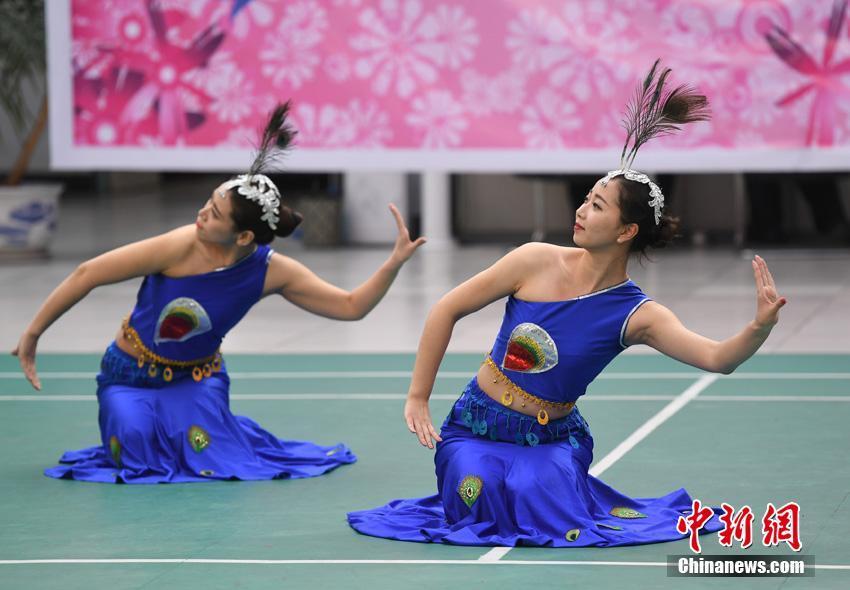 3月6日,在“三?八”国际妇女节前夕,长春市第四看守所的民警和在押人员共同演绎了一场以“魅力女人托起春的希望”为主题的三?八节文艺汇演。民警和在押人员表演了歌舞、诗朗诵等节目。此举意在丰富监所警营文化生活,教育引导女性在押人员树立自尊自爱自立精神。图为民警表演的傣族舞蹈,将演出推向高潮。张瑶 摄