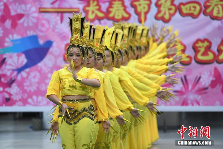 3月6日,在“三?八”国际妇女节前夕,长春市第四看守所的民警和在押人员共同演绎了一场以“魅力女人托起春的希望”为主题的三?八节文艺汇演。民警和在押人员表演了歌舞、诗朗诵等节目。此举意在丰富监所警营文化生活,教育引导女性在押人员树立自尊自爱自立精神。图为民警表演的傣族舞蹈,将演出推向高潮。张瑶 摄