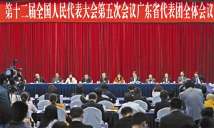 6日上午,十二届全国人大五次会议广东代表团举行全体会议,审议李克强总理作的政府工作报告。