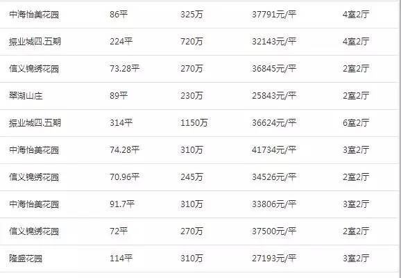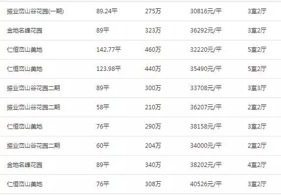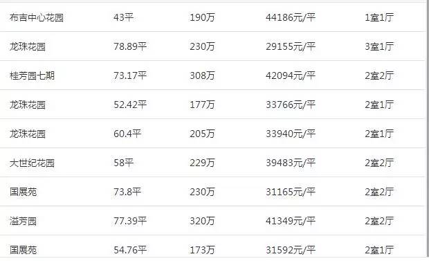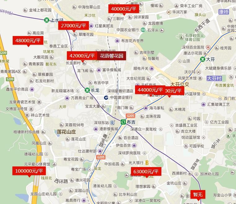 (布吉片区二手房价格 数据来源中原地产网)