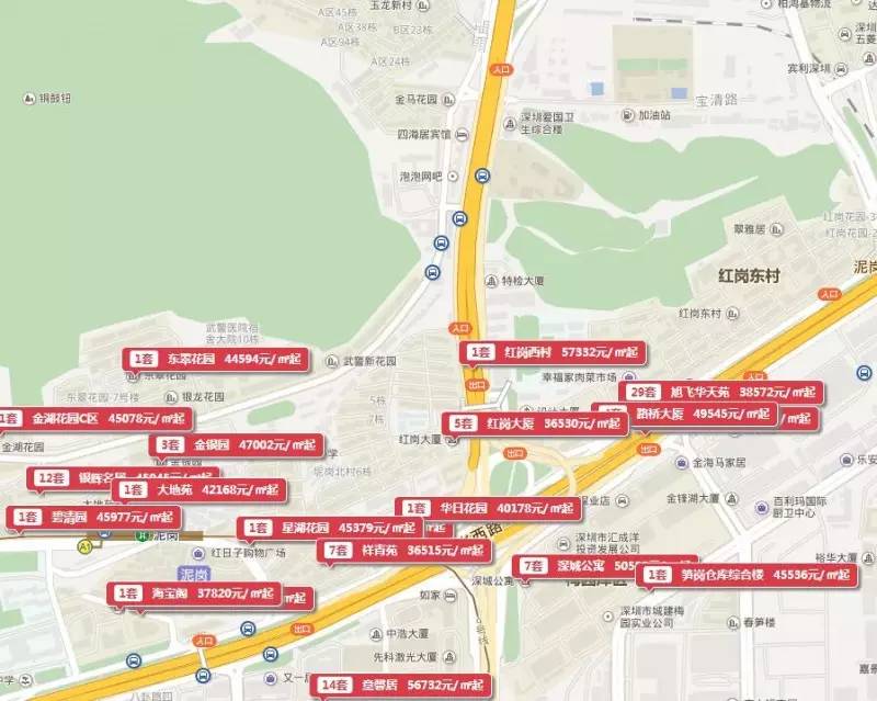 周边有华润万家,百安居家具城,平方超市等购物中心,公交站有宝安北路口,很快就到笋岗仓库,可直达东门步行街,交通很便利。房子楼层高,电梯房,多个小户型的单身公寓房,价钱低,满足更多上班族的需求。负担小,周围安静。 二手房价区间在4.1万-5.6万元之间。