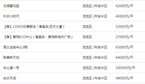 (布吉片区新盘价格 数据来源中原地产网)