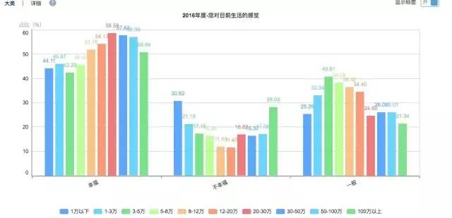 他们当中,感觉到“不幸福”的人群比例几乎与低收入群体(年收入1万-3万元)相当。“钱”真的不是万能的。