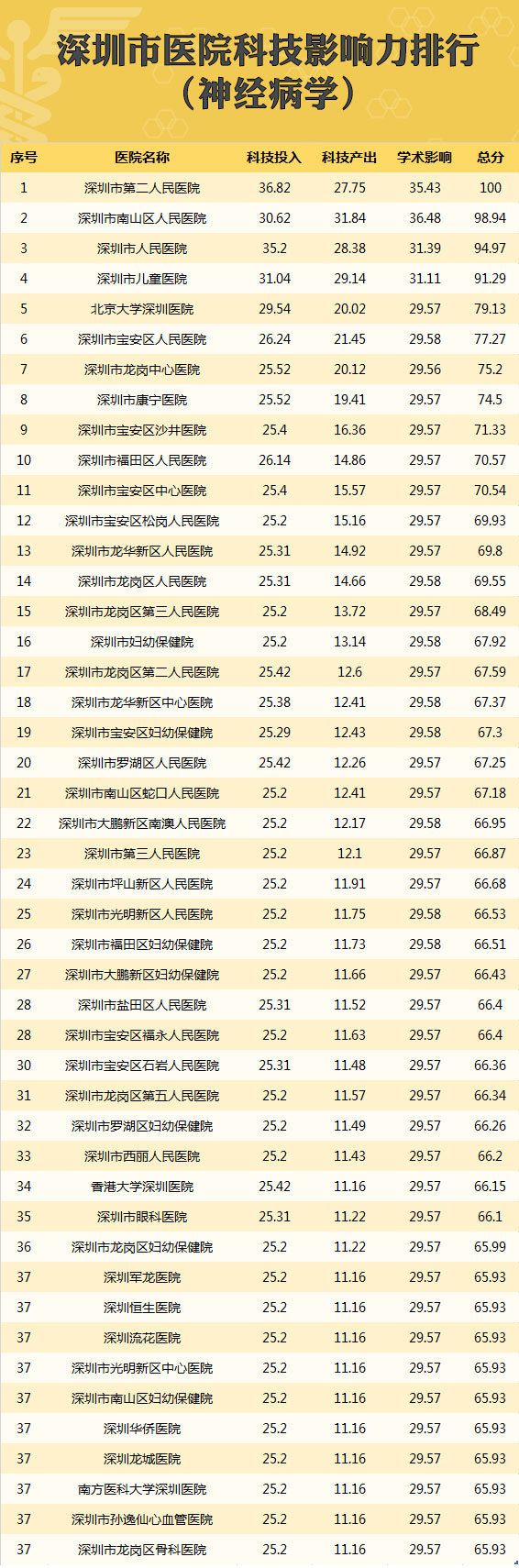 这份排行榜是由深圳市卫生计生委托中国医科院医学信息研究所项目组实施,这也是是深圳市开展第三方医学科技评价的探索之一。中国医科院医学信息研究所是全国医院科技影响力排行榜的发布机构,自2014年起,已经连续三年向全国发布了中国医院科技影响力排行榜。