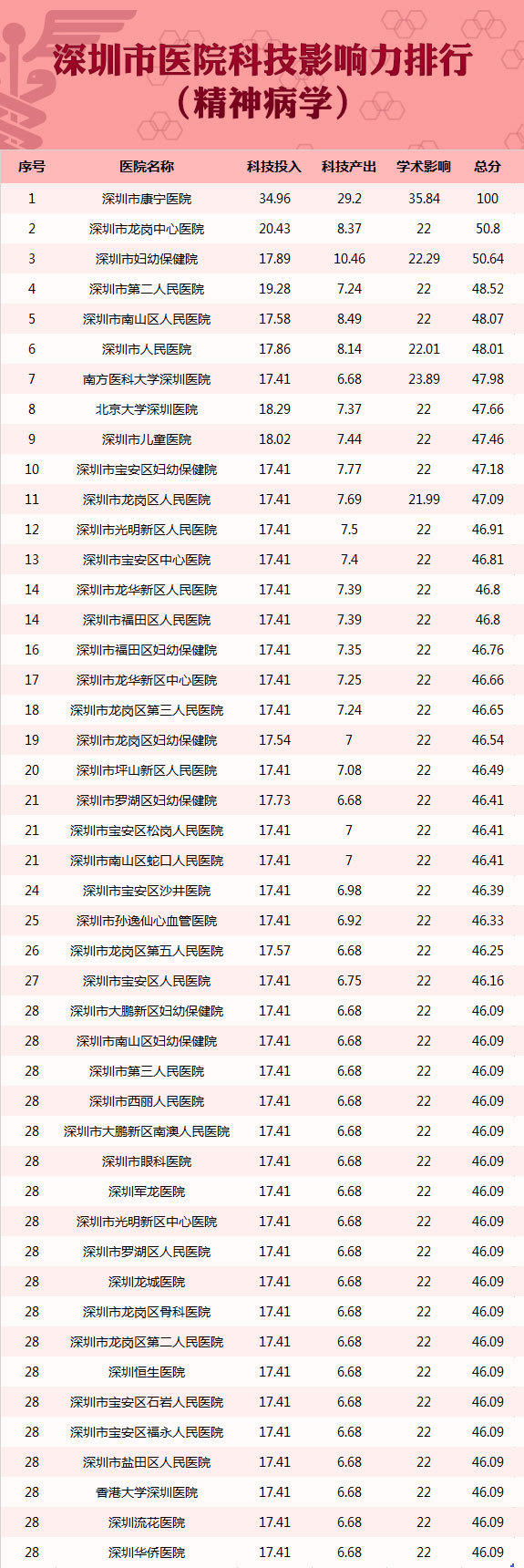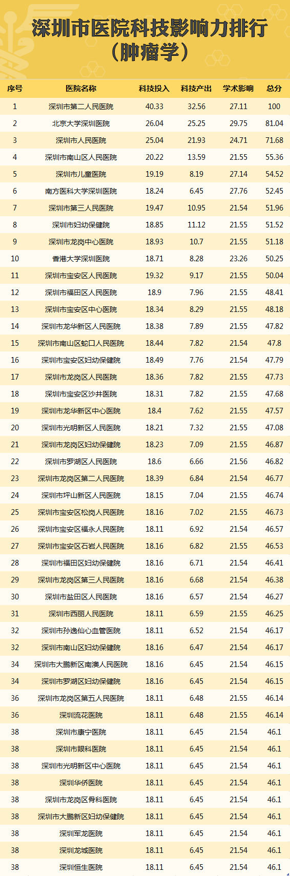 深圳首个医院科技影响力排行榜!26个学科冠军诞生,你关心的医院在哪?