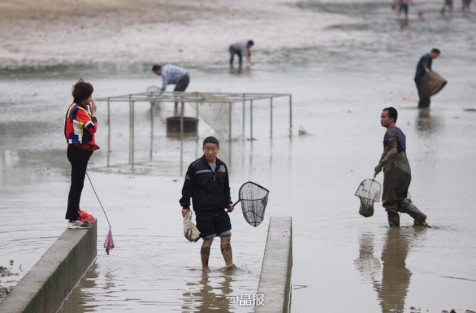 近日,因为要换水提升水质,深圳市中心公园的小池塘内一夜之间被抽掉一大半湖水,露出了湖底,引得不少居民天没亮就下湖摸鱼。