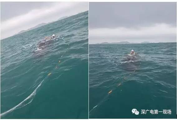 昨天上午,在深圳大鹏海域,有人发现了一条被困的鲸鱼,得到消息后,大鹏渔政部门工作人员立即赶往了现场。开始展开救援工作……