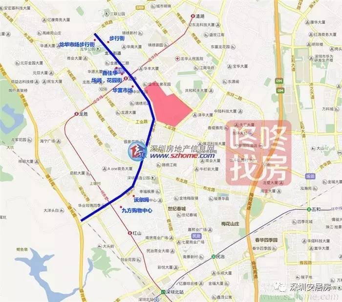 项目为图片红色区域,目前最新地铁站位4号线龙华站,步行至地铁站预计5-10分钟。
