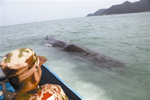 “这比海上救人难度大很多。”海警四大队政委李香占经历了很多次海上人员救援行动,他认为这次救援鲸鱼的行动与以往都有着很大的不同。“关键是不知道它哪里出了问题。”