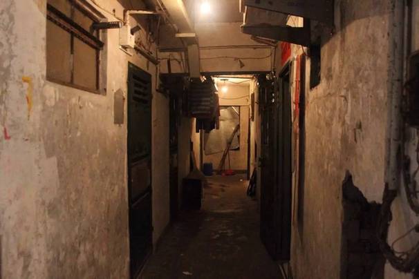 但到了华海公寓就是另一番景象了,由于入户走廊设置在楼内,走廊两边均为房间,门口正对着另一户的门口,并且灯光系统较老,走廊内昏暗无光,墙体也有多处破损。随后笔者来到楼下中介门店。