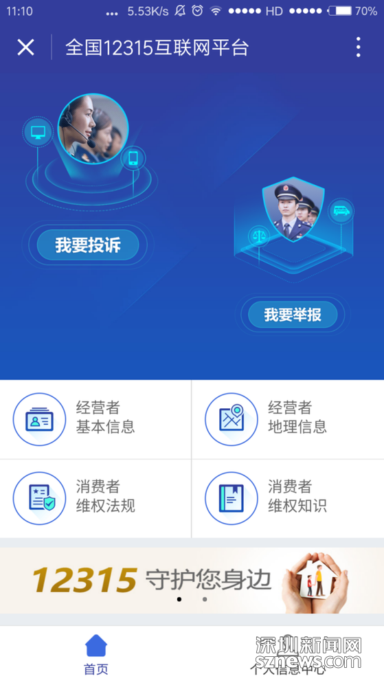 微信用户通过微信搜索“12315”即可访问“12315”小程序,可选择“我要投诉”对日常生活消费或服务中与商家发生消费者权益争议的事件进行投诉,或选择“我要举报”对商家涉嫌违法违规经营的行为进行举报,一旦投诉或举报成功,就会生成案件编号,用户可以通过12315小程序的个人中心随时查看投诉举报反馈进度。同时,用户还可以通过“12315”小程序查询经营者基本信息及地理信息,了解消费者维权法规和维权知识。