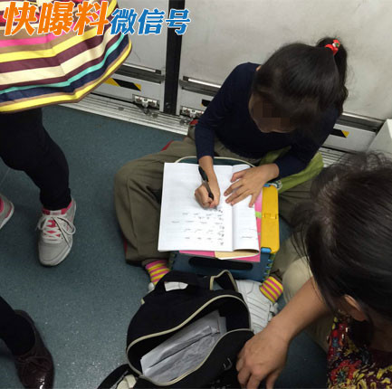 地铁高峰深圳一女生坐地做题 母亲圈地盘(组图)