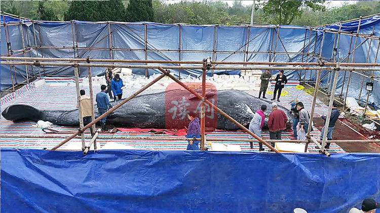 参与解剖抹香鲸的科研人员表示,这肯定是国内第一例对怀孕抹香鲸的解剖案例,在国际上也极为罕见。