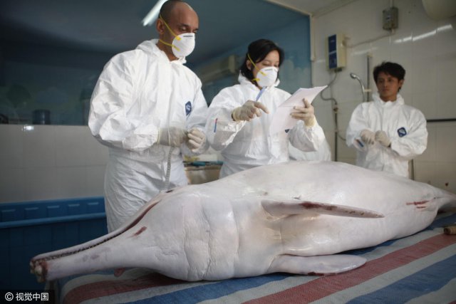 2012 年 9 月 28 日,白海豚 " 梅梅 " 在深圳盐田港搁浅,身上有大面积被石头划伤的痕迹,心脏跳动微弱,处于休克状况。专家马上进行施救,打强心针、注射激素类药物、进行抗病毒治疗,终于抢救过来。