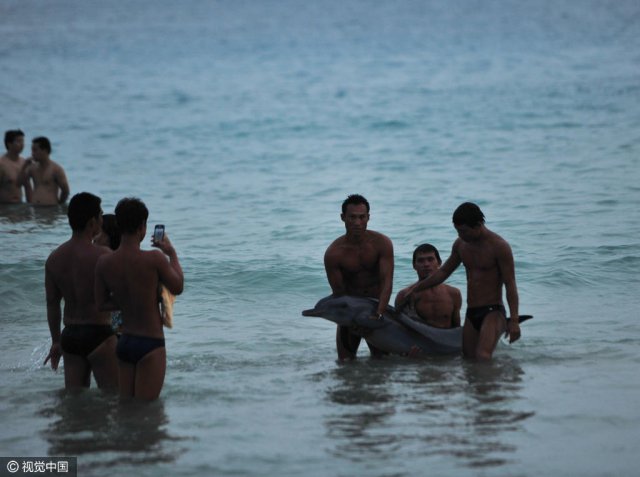 新闻提要 2017 年 3 月 12 日晚 6 时 30 分左右,一头 12 米长的抹香鲸搁浅在广东惠州大亚湾的海滩上。"(图片来源:视觉中国) 2016 年,山东日照灯塔风景区一条珍贵的海豚在海边漂浮,工作人员将海豚尸体捞上岸。