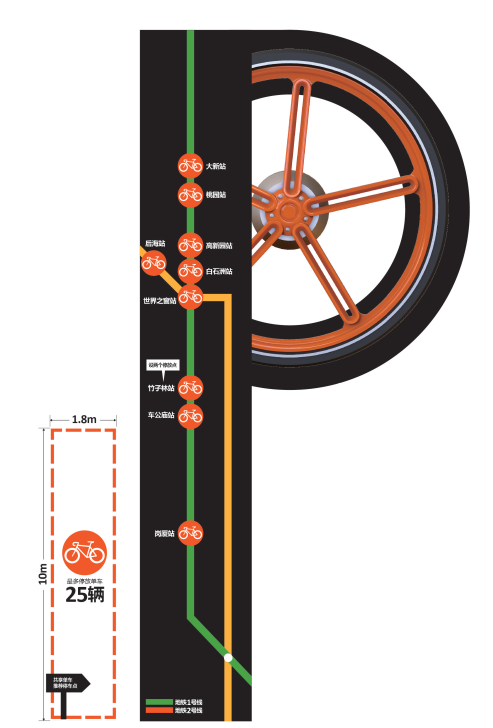 为了解决共享单车随意问题,深圳地铁与共享单车企业展开合作,借助互联网自行车出行大数据和深圳通刷卡数据分析,并经过相关部门报批后,首批定于地铁1、2号线的9个车站设立共享单车停放点。其中,竹子林地铁站将设两个停放点。
