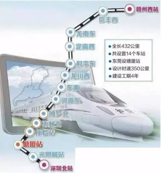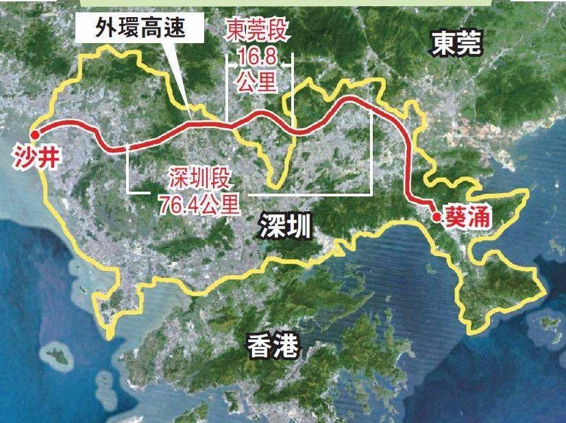 经过深圳的宝安、光明、龙华、龙岗、坪山以及东莞市