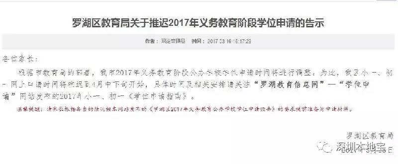 2017年罗湖区学位申请推迟到4月中旬