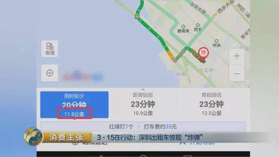 新闻提要 央视财经记者选择的第一条调查路线是从宝安区兴业路到深圳机场候机楼,为了了解距离,记者通过手机导航软件查出了三条行车线路,行车距离分别是13.5公里、13.1公里和12.9公里。