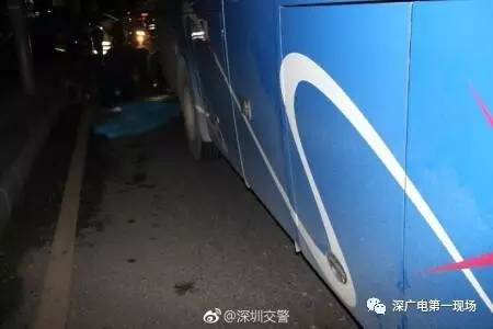 在事故现场,还能看到路面上有着大片血迹,不远处大客车紧急刹车留下的车轮痕迹清晰可见。大客车驾驶人黄某表示,他是深圳某客运公司的驾驶员,已经有了十多年的客车驾驶经验,昨天晚上事故发生之前,他已经看到了前方有自行车,还特别避让了自行车。