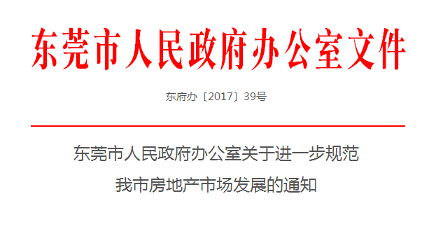 3月21日下午,东莞市人民政府办公室发布关于进一步规范东莞市房地产市场发展的通知。