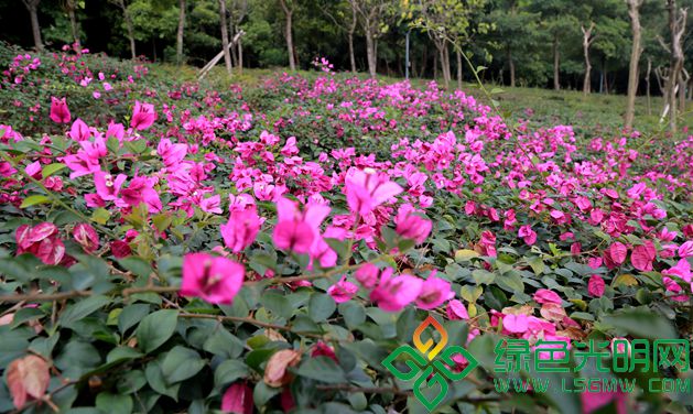 从公园的南门进来,登上不远处的小山坡,可以看到一片紫色的簕杜鹃。