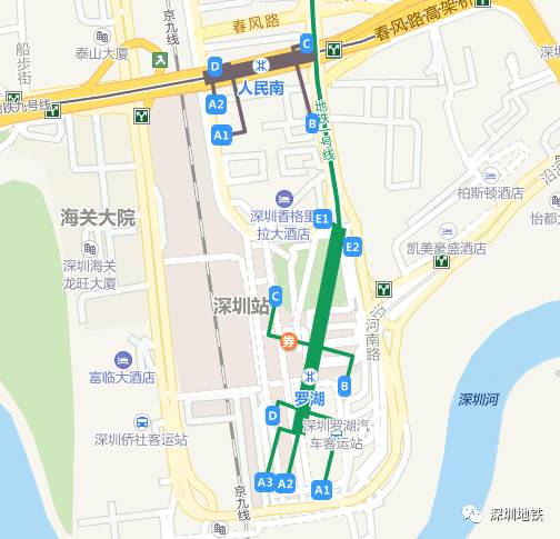 新闻提要 去深圳火车站不一定要到罗湖站,还有... 人民南站,9号线开通后,新的出行方式出现在了市民朋友的视野中。+ 罗湖口岸位于人民南路火车站旁,市民可以选择乘坐深圳地铁9号线至人民南站,步行5分钟抵达该口岸,市民过关后可乘坐铁轨列车到达香港各地。