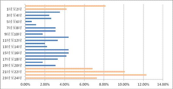 从各时间段群众投诉量占比看,群众投诉也是意见最大的时段,集中在20时至凌晨2时。