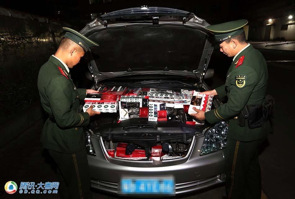 3月26日,广东边防六支队对外通报,日前在中英街入关车道现场查获一宗涉嫌利用轿车头发动机位置藏匿走私香烟出境案件,查获万宝路等香烟113条。