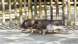 昨日,由华大基因利用克隆技术繁育的“GHR克隆猪”首次亮相深圳野生动物园。 深圳商报记者 施平 摄
