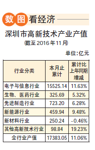 深圳高新技术产业持续多年的跨越式发展,带动着战略性新兴产业的勃兴,引领制造业和服务业迈向高端。这是深圳得以实现有质量的稳定增长、可持续的全面发展的重要推动力。可以说,是高新技术产业成就了今天的深圳。