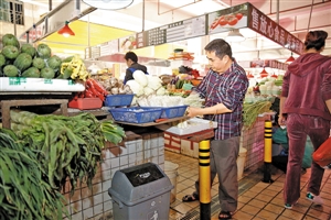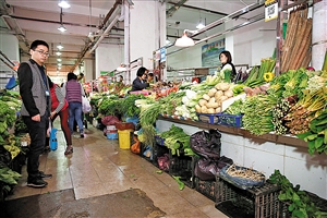随着整治工作不断推进,农贸市场内许多“见效快、易复发”的现象暴露出技术性硬伤,如摊档超线、通道湿滑、场外拥挤、消防通道堵塞等。如澳门新村市场摊档台面建造已久,为单一平面且面积有限,两侧摊档中间的通道宽度充足,满足消防通道所需后仍有不少余地。据实地了解,大多数经营者出于销售的现实需要,自行使用塑胶板或木板延伸陈列台,擅自扩大经营面积。由于下水道预设在摊档台面正下方,一旦商户采取搭建木板的方式扩大经营面,蔬菜表面的淋水均滴落在排水设施之外,下水道难以发挥作用,造成地面湿滑脏乱。此外,许多农贸市场冰鲜档设施不合理,未设置良好的排水设施,台面构造不利于防护和导流,故此区域常见卫生较差等情况。小市场摊档两侧排水沟设计不合理,既无易清洁的盖板,又无隔栅防鼠设施,排水沟坡度不合理,水流不畅容易造成淤积,极易产生异味。部分农贸市场人员密集、商住杂居,停车场所不足。此外,个别位于城中村高层建筑首层的农贸市场消防审批也存在政策限制。