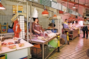市场内摊档未将生鲜家禽摆放入冷柜。
