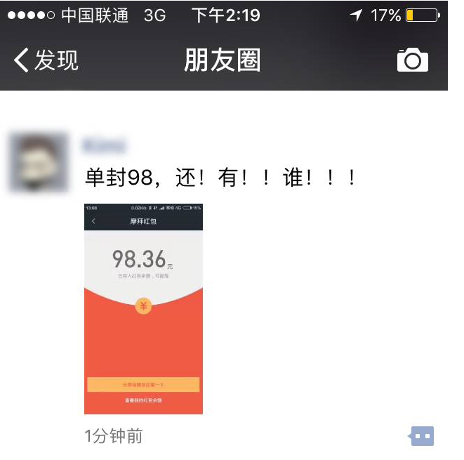 我的朋友圈竟然被摩拜现金红包刷屏了
