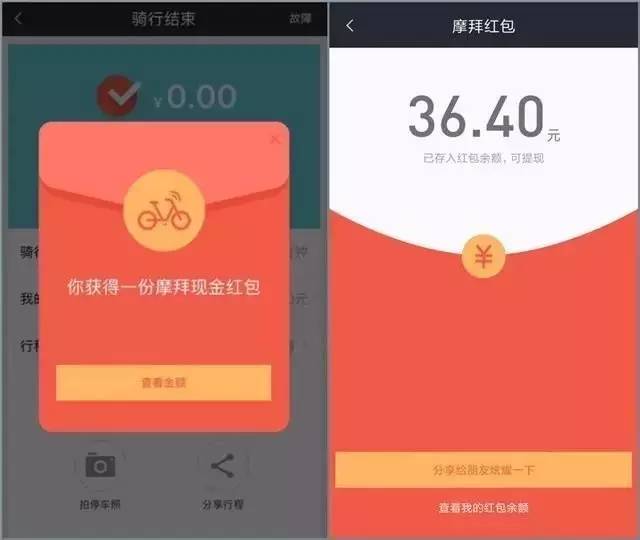 1. 每天仅可提现一次,1-5个工作日内到账,提现不收取任何费用;2. 红包车活动在小程序中暂时不可使用。也可以获得摩拜单车的现金红包。 点击“阅读原文”,下载摩拜单车 APP