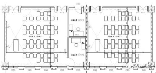 ▲35人 35人教室组合平面图(中间设置教师休息室,如有需要,可拆除休息室设置,即转换为下图35人 50人教室)