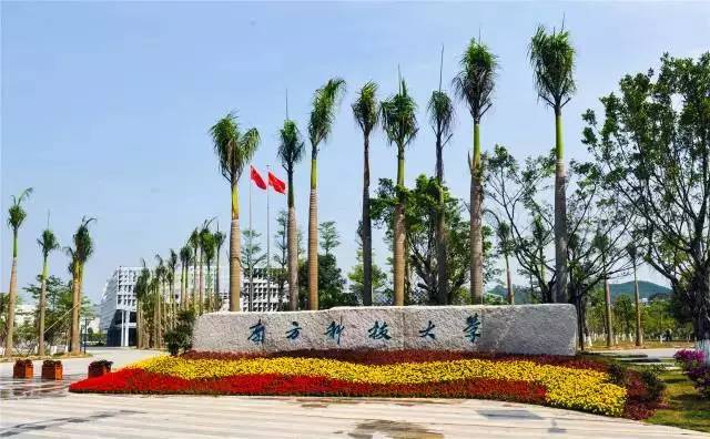 从一号门进入校园,首先映入眼帘的是校名石与大名鼎鼎的教学科研服务中心——南科大第一高楼。趁着早晨阳光正好,赶紧先与校名石合影一张吧。