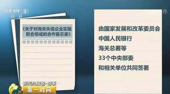昨天(28号)上午,国务院新闻办召开新闻发布会,公布了日前由33个国家部委签署的《关于对海关失信企业实施联合惩戒的合作备忘录》,这是继去年11月发布《关于对海关高级认证企业实施联合激励的合作备忘录》之后,国家社会信用体系建设推出的又一重大举措。