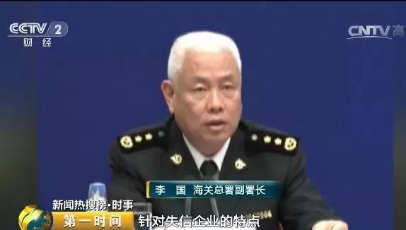 海关总署副署长李国:进出口企业一旦被海关认定为失信企业的,则在全国海关乃至整个国家社会信用体系中都会被贴上标签,受到高强度的限制和约束。