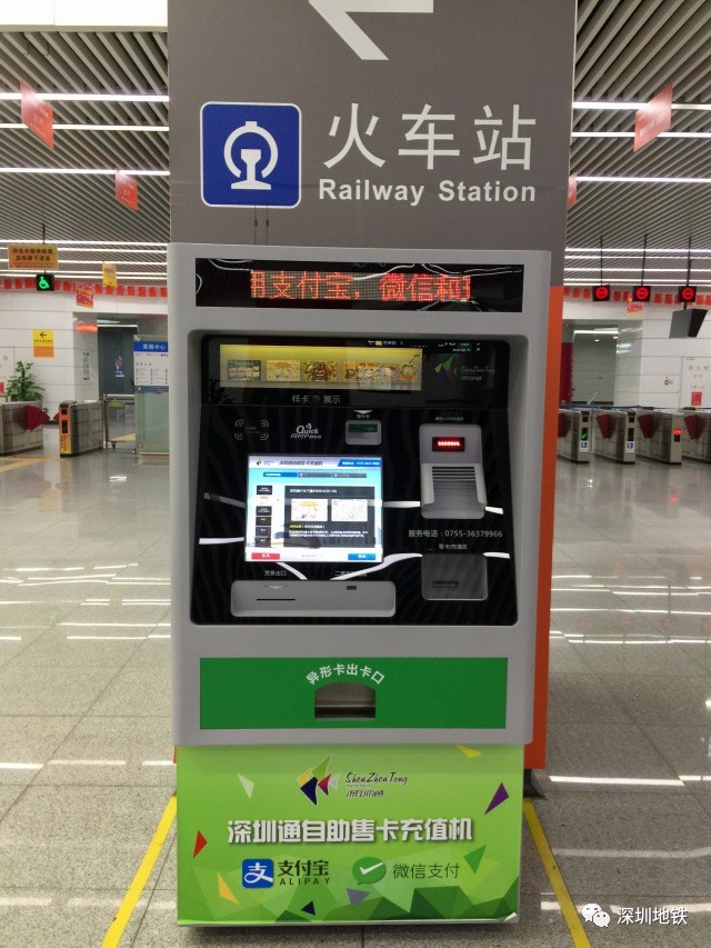 站厅付费区里面还设置2个深圳通自助充值机,其他手机深圳通需要到2号线站台可以自助充值,提醒下到账可能会延时,不过不用担心只是早晚的问题。