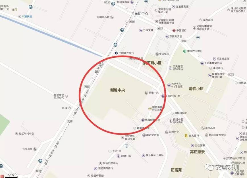 2、新地中央花园:105套,位于光明新区光明大道与河心路交汇处;