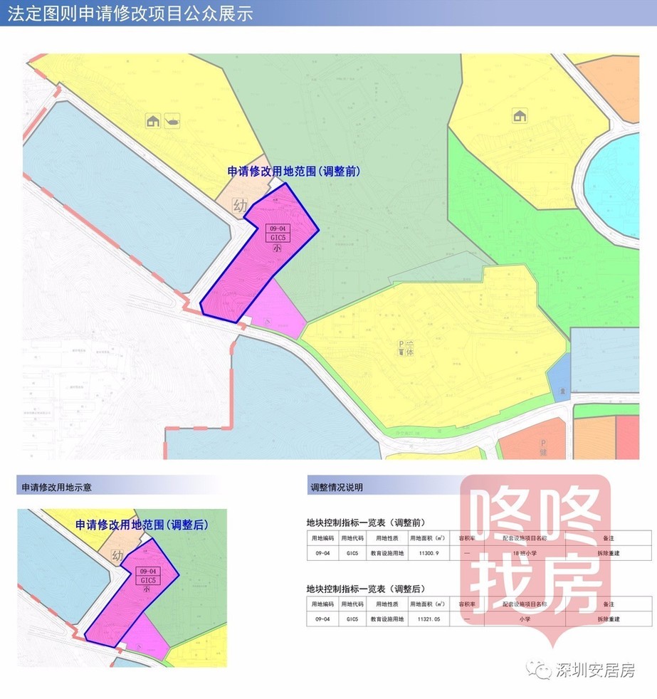 拟对[银湖地区]法定图则09-04地块进行规划调整,并按《深圳市城市规划标准与准则》(2014)表达。规划调整后,09-04地块用地面积11321.05平方米,公共配套设施为小学,其余均不变。
